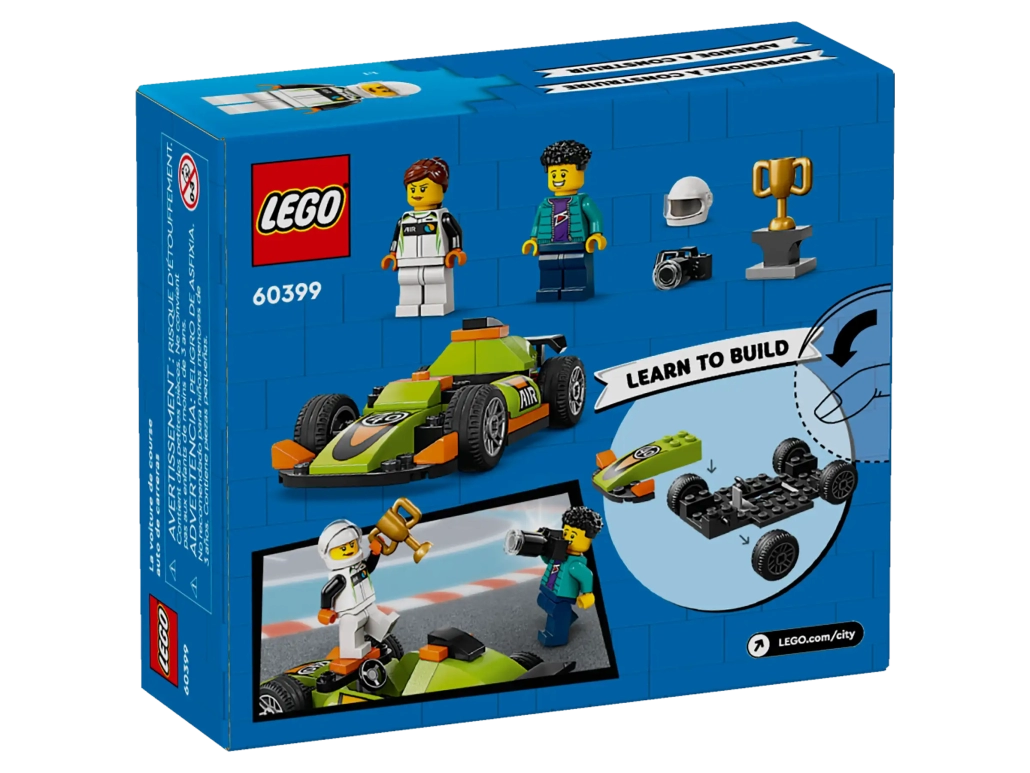 El Deportivo de Carreras Verde LEGO® City (60399) abre las puertas de un mundo de juego creativo a los peques a partir de 4 años. Prepárate para animar a tu joven piloto y disfrutad juntos de mágicos momentos de juego con este coche de carreras dejuguete LEGO equipado con neumáticos deportivos y un fabuloso alerón trasero. El set contiene también minifiguras de un fotógrafo y una piloto, además de un trofeo para interpretar imaginativas historias.