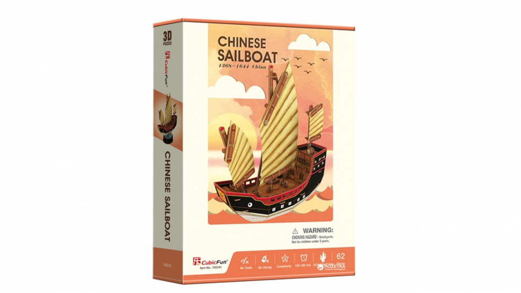 ¡Conoce uno de las Barcos más antiguos con cubicfun! El Junco Chino data del año 600 a.c. Colecciona el Puzzle 3D , ahora en versión mini, fácil de armar. ¡Diviértete y aprende! Una vez armado mide: 20.8 x 9.8 x 27.8 cm Contiene 62 piezas. Para el armado del puzzle no es necesario tijeras o pegamento. Tiempo estimado para el armado 150 a 180 minutos. Medidas del empaque: 24 cm x 17 cm x 5 cm