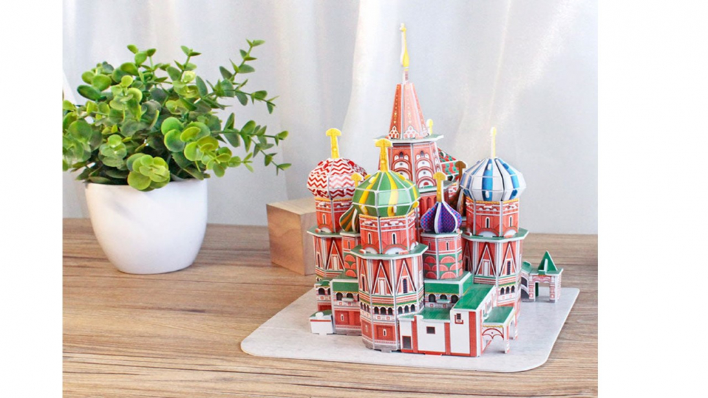 Arma el santuario más famoso de Rusia en su versión mediana, está hecha de cartón pluma, sus piezas se ensamblan sin pegamento u otro material adicional, incluye manual de instrucciones.