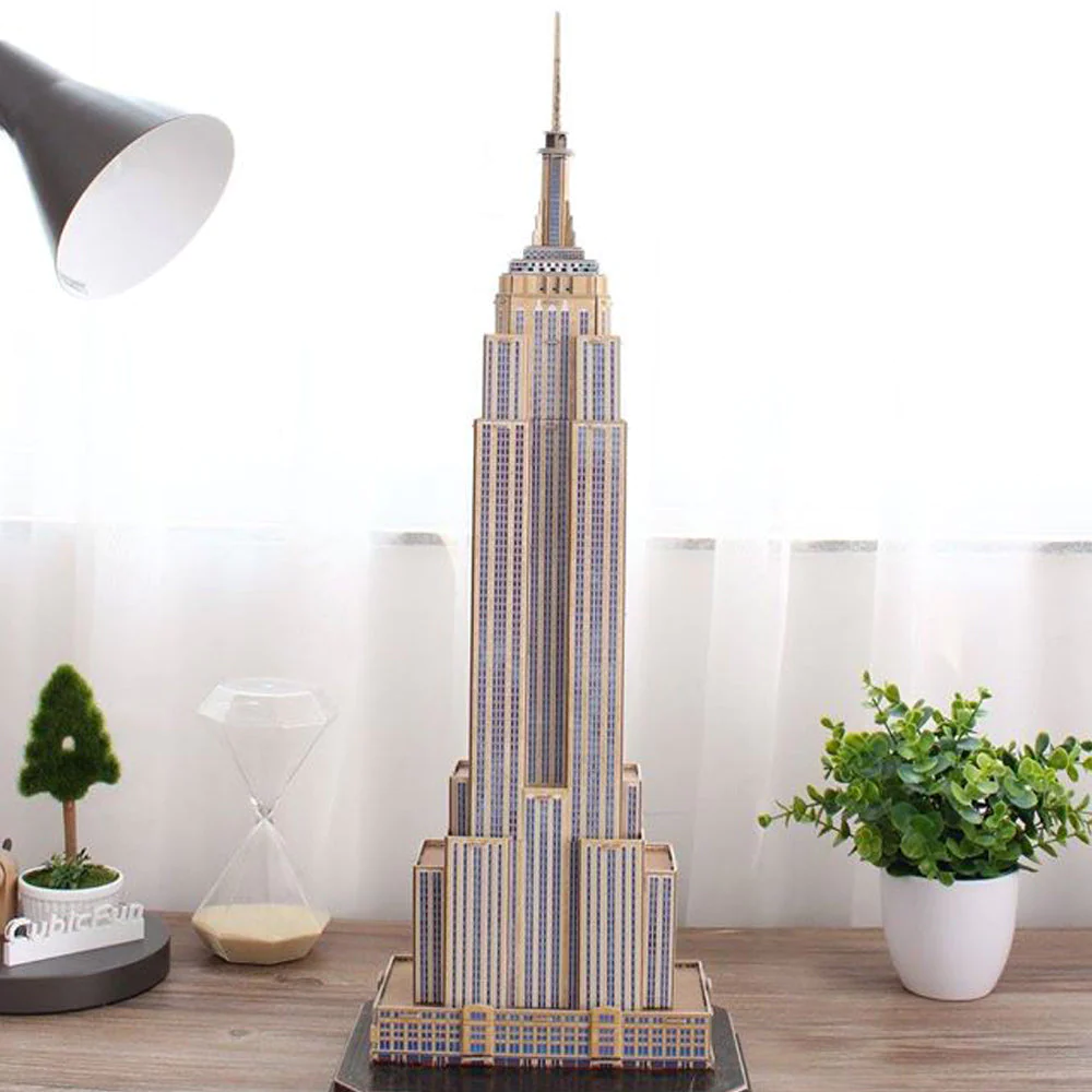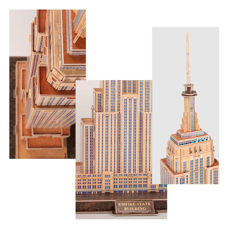 Arma y transportate a Nueva York con uno de sus edificios más famosos, su altura fue motivo de records durante 40 años y ahora tú podrás coleccionarlo, está hecho de cartón pluma, sus piezas se ensamblan sin pegamento u otro material adicional, incluye instrucciones.