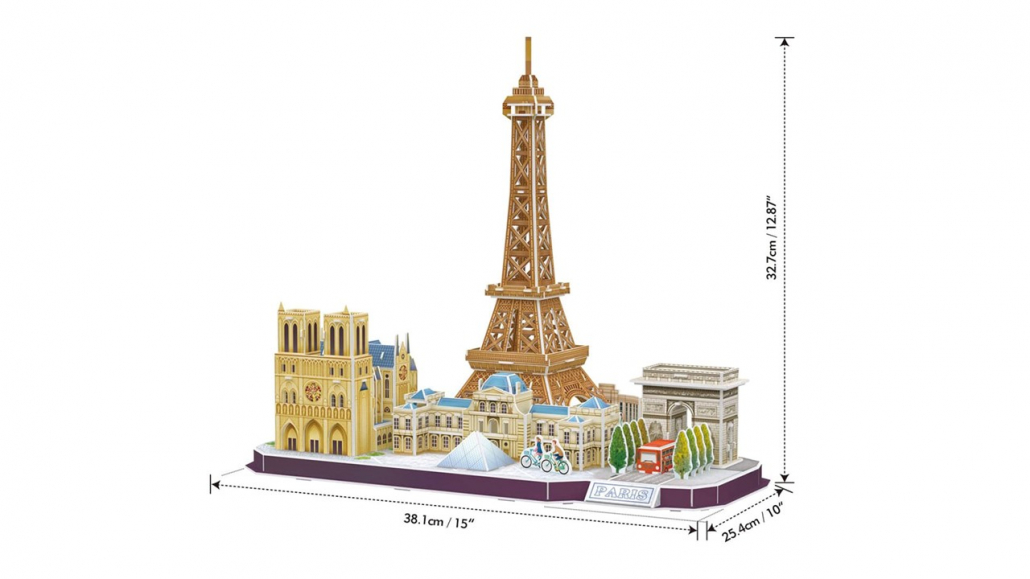 Arma y recrea París con todos los elementos representativos, transportate a tu ciudad favorita de Puzzle 3D, está hecha de cartón pluma, sus piezas se ensamblan sin pegamento u otro material adicional, incluye manual de instrucciones.
