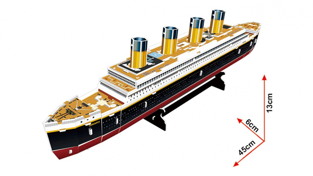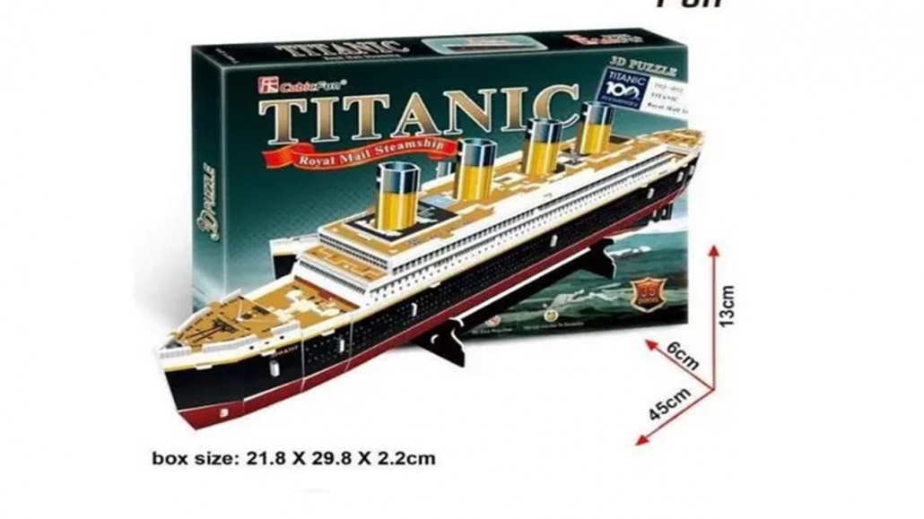 ¡Arma el Puzzle 3D del Barco más conocido de todos! El Titanic fue el Barco más grande de su momento, se hundió en 1912 durante su primer viaje y causó uno de los mayores naufragios. Cuenta con 45 cm de largo para 100 años desde su hundimiento. Una vez armado mide: 13cm x 45cm x 6cm. Contiene 35 piezas.
