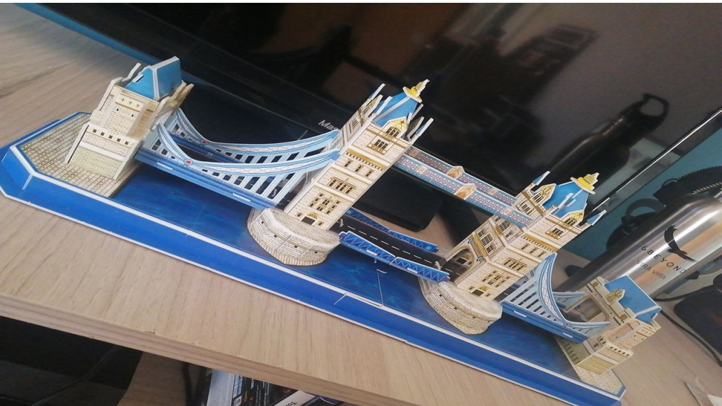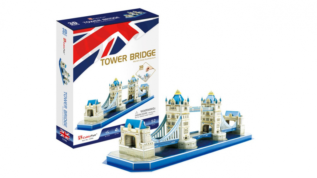 Arma y transportate a Londres con el Tower Bridge, el puente más famoso de la ciudad, con 120 años de antigüedad, está hecha de cartón pluma, sus piezas se ensamblan sin pegamento u otro material adicional, incluye manual de instrucciones.
