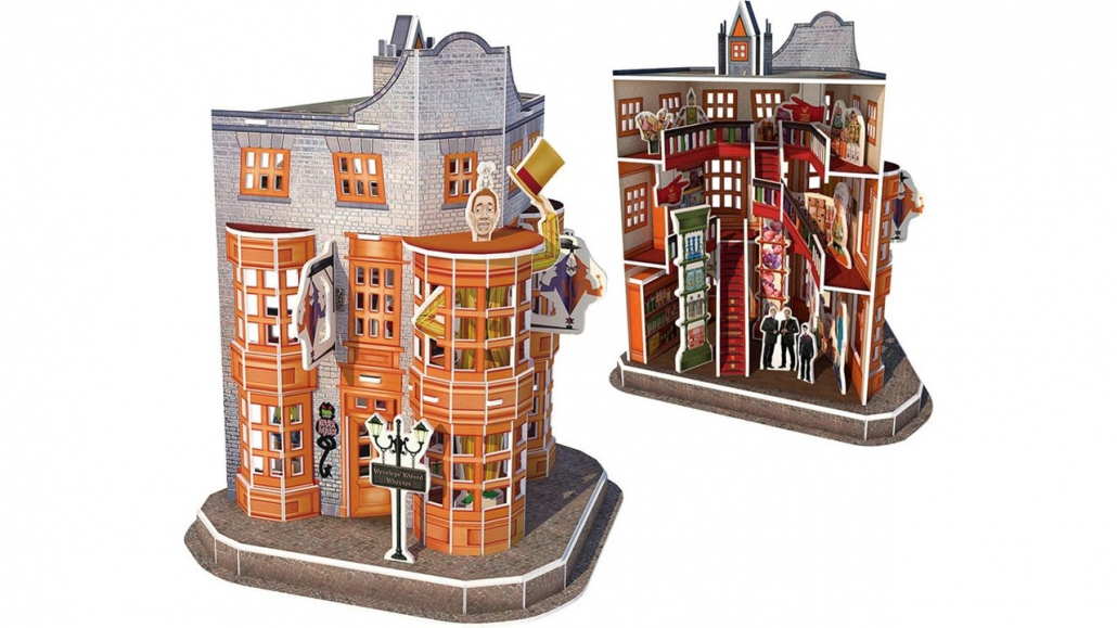 Revive el mundo mágico de Harry Potter, arma la tienda de los gemelos Weasley, conocidos por crear las mejores bromas mágicas, incluye personajes y vista de quinta entrega de la saga, además puedes completar tu colección agregando diferentes tiendas del Callejón Diagon y así tener tu mundo mágico de Harry Potter.